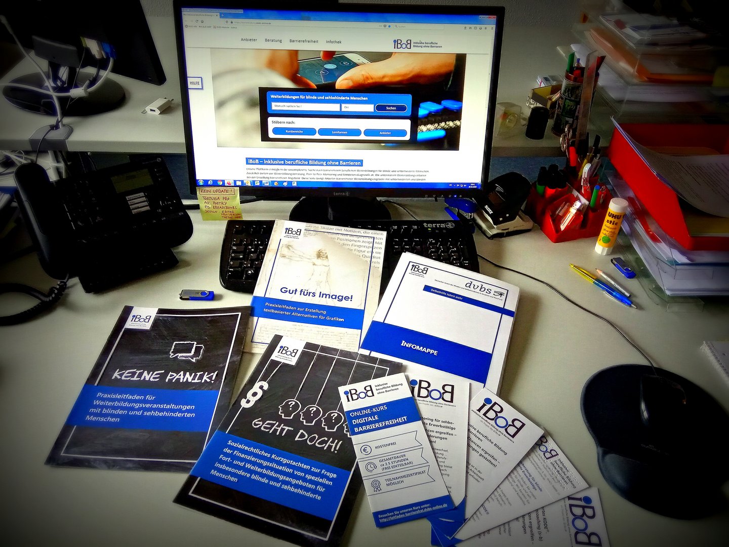 Sie finden die iBoB-Schulungsangebote unter http://leitfaden-barrierefrei.dvbs-online.de. Darüber hinaus wurden Broschüren erarbeitet, die bestimmte Fragestellungen aus dem Bereich beruflicher Weiterbildung für sehbeeinträchtigte Menschen ausführlicher klären. Die Broschüren können als PDF von der Weiterbildungsplattform heruntergeladen oder in der Druckfassung beim DVBS bestellt werden.